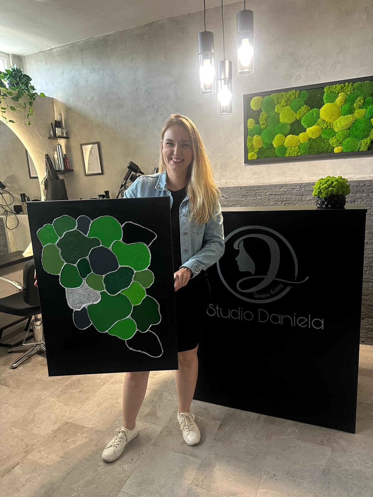 Děkuji Marcelko za nádherný obraz! Spojení zelených odstínů a stříbrných detailů jdou krásně ruku v ruce s celým konceptem prostoru. Skvělá práce, která krásně oživí mé studio.