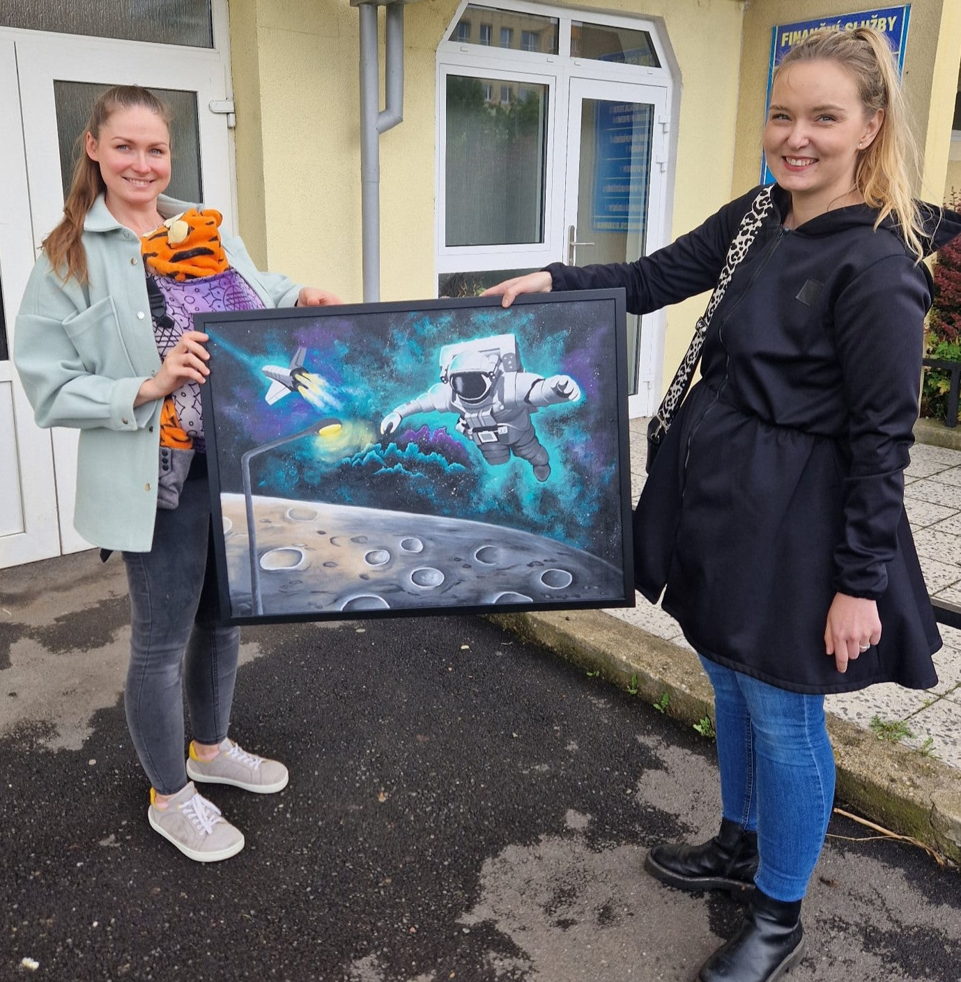 Máca je moje talentovaná kamarádka, maminka na mateřské, která se rozhodla splnit si svůj sen a poctivě na tom pracuje :-) Při tvorbě mého obrazu se musela popasovat s dost specifickým zadáním, výběrem barev a nespočtem dalších požadavků, ale zvládla to na výbornou a mojí představu dokázala přenést na plátno nad očekávání dobře a já jí tímto nesmírně děkuji a moc držím palce na její další cestě :-)